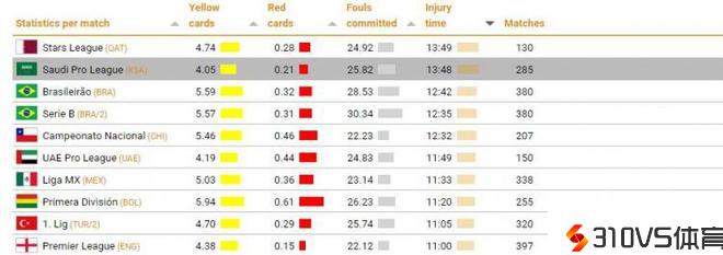 CIES统计全球联赛场均补时:卡塔尔联13分49秒最长,英超第10