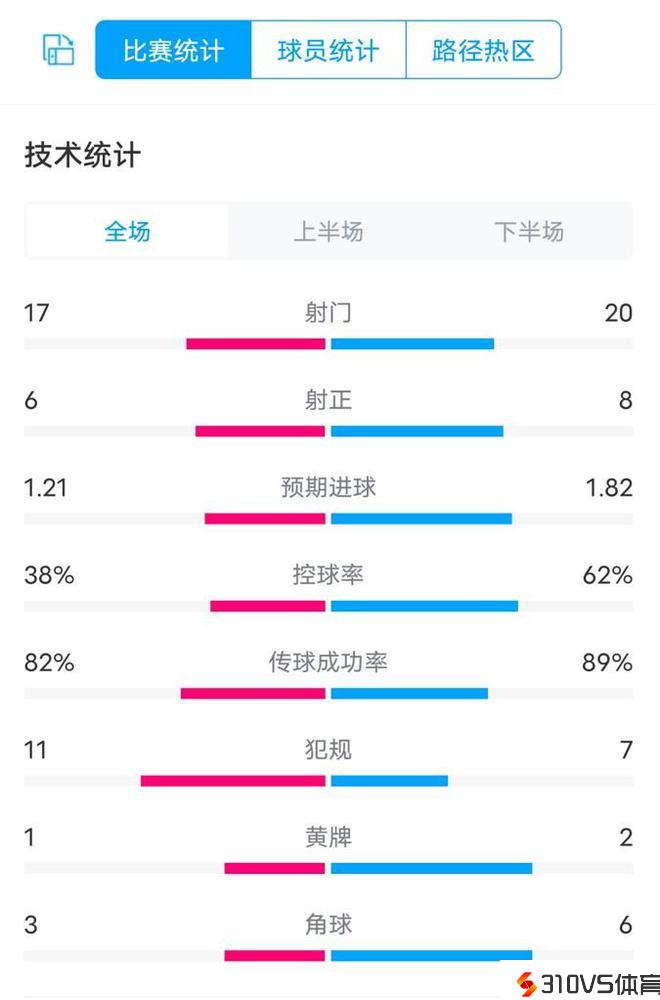 控球率:38%-62%