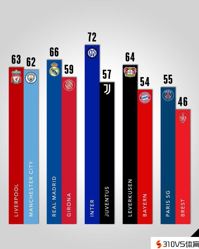 五大联赛前2分差:英超1分西甲7分意甲15分&红军蓝月本周末交锋