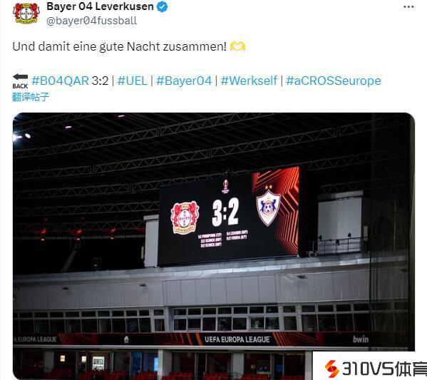 补时连进两球逆转!勒沃库森晒比分牌:大家晚安