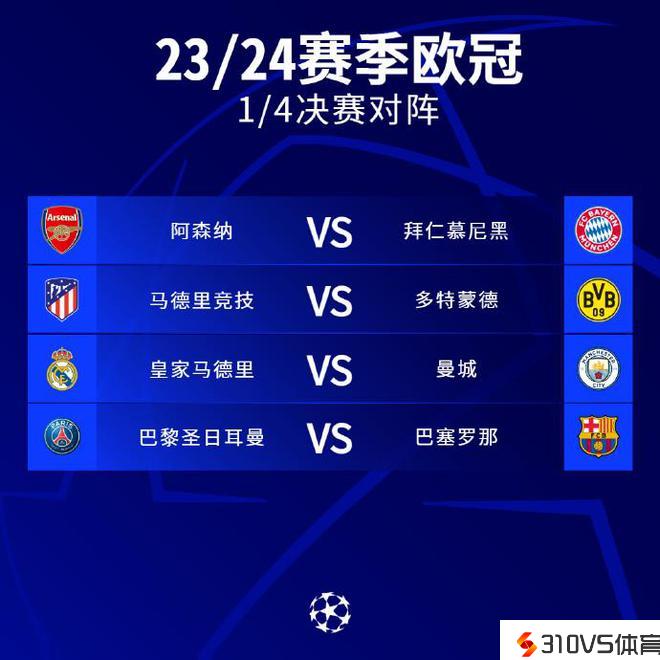 欧冠八强对阵抽签:皇马迎战曼城,阿森纳VS拜仁慕尼黑