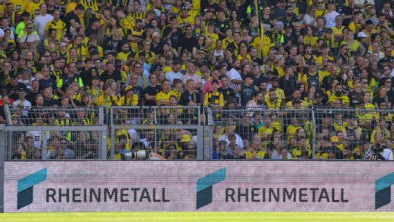 北京时间8月22日讯,德甲联赛首轮比赛将于本周末打响、根据外媒ESPN报道,多特球迷计划在德甲联赛首轮时大规模抗议球队与德国军火制造商莱茵金属签订的赞助协议。