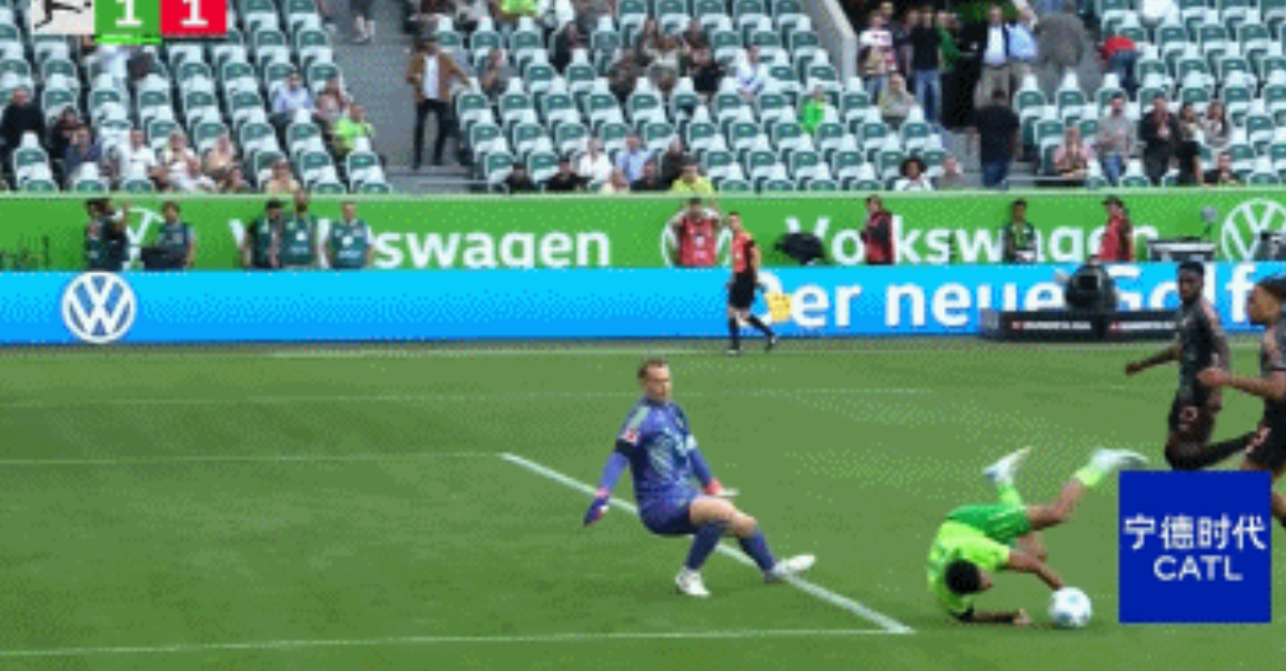 下半场第47分钟,此前助攻穆西亚拉破门的博伊犯规,主裁给出黄点套餐,马耶尔主罚命中,沃尔夫斯堡将比分扳成1-1平。