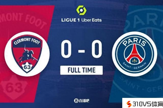 全场竞赛完毕,巴黎0-0克莱蒙。