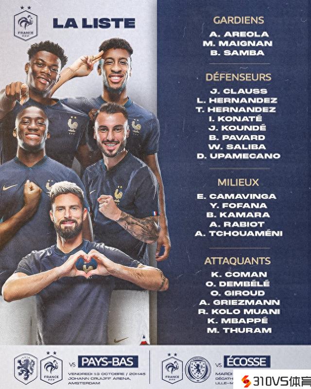 法国队新一期大名单:姆巴佩领衔,吉鲁在列,克洛斯回归