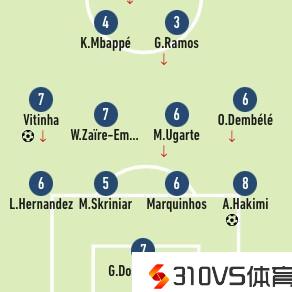 队报为巴黎评分:阿什拉夫8分最高,姆巴佩4分,G-拉莫斯3分