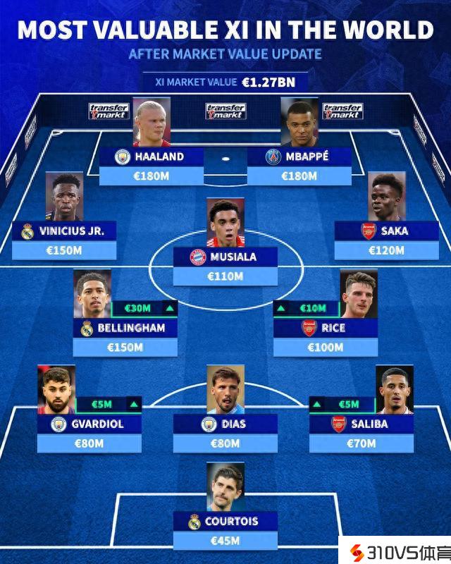 德转列足坛最贵阵容:哈兰德、姆巴佩领衔,贝林、赖斯在列