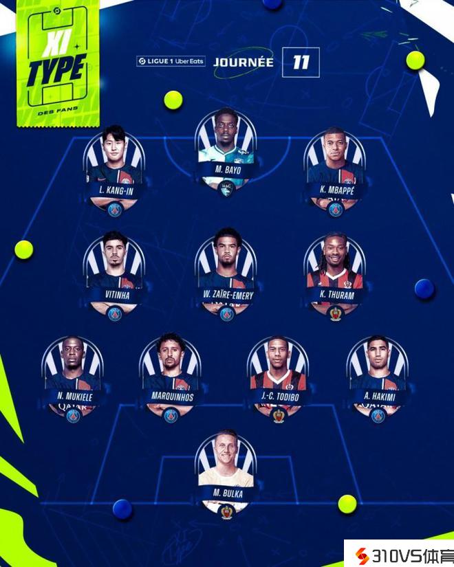 法甲第11轮最佳阵容:姆巴佩、李刚仁在列,巴黎7人中选