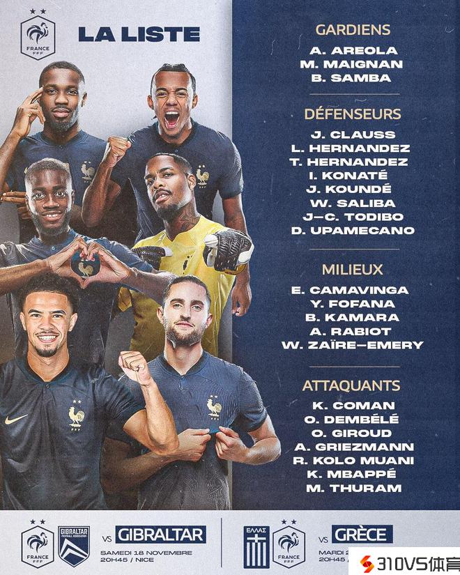 法国队新一期大名单:姆巴佩领衔,17岁扎伊尔-埃梅里中选
