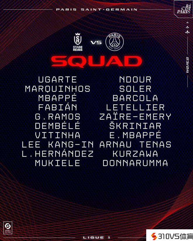 巴黎发布客战兰斯20人名单:姆巴佩兄弟均中选,李刚仁在内