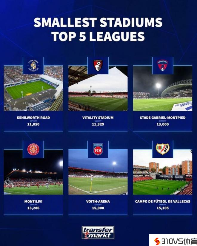 德转清点五大联赛最小球场:卢顿第一,西甲领头羊赫罗纳上榜