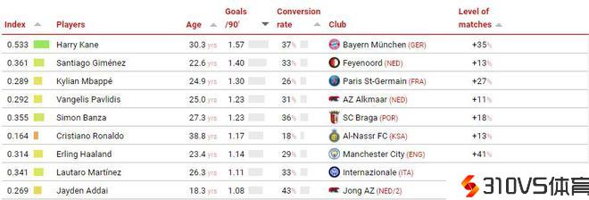 CIES:本赛季场均进球大于1的前锋中,C罗进球转化率最低,姆巴佩倒2