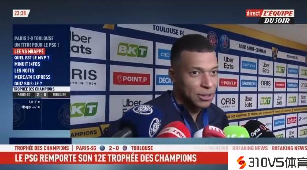 姆巴佩法超杯赛后自动到混采区接受采访,并谈到自己的合同效果