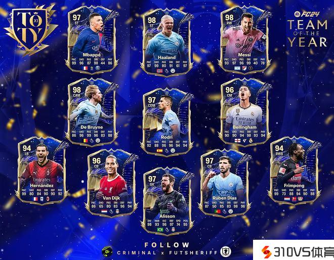 EAFC年度最佳阵泄露:梅西、哈兰德、姆巴佩领衔,罗德里在列