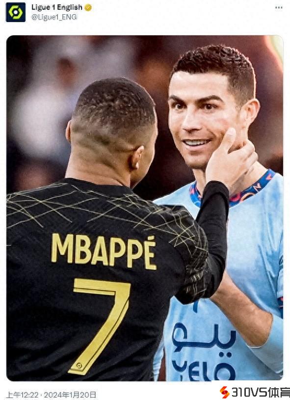 C罗称沙特联比法甲更好,法甲官推晒出姆巴佩摸脸C罗图片