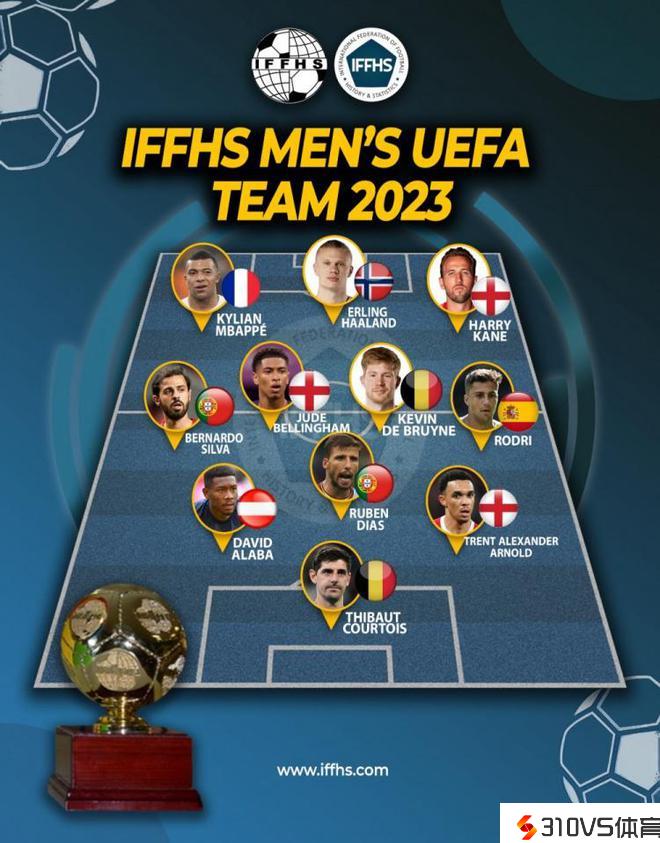 IFFHS2023欧足联最佳阵:姆巴佩、哈兰德、凯恩锋线三叉戟