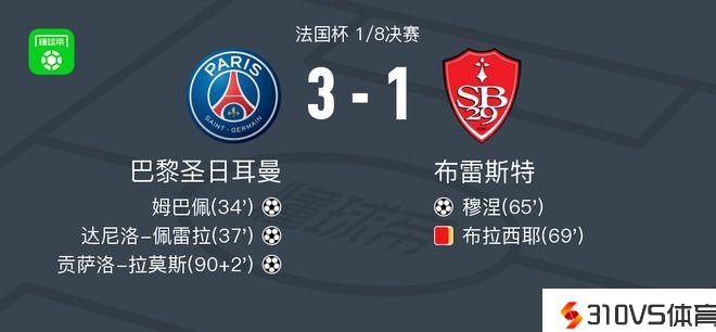 巴黎圣日耳曼vs布雷斯特球员评分:奥斯曼-登贝莱8.5分,布拉西耶5.7分
