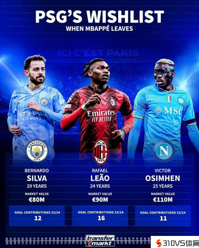 德转列姆巴佩离队后巴黎引援目的:莱奥领衔,B席、奥斯梅恩在列