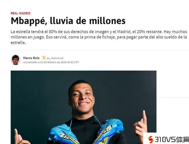 阿斯:肖像权是姆巴佩转会皇马的最后效果 皇马通常只分享50%