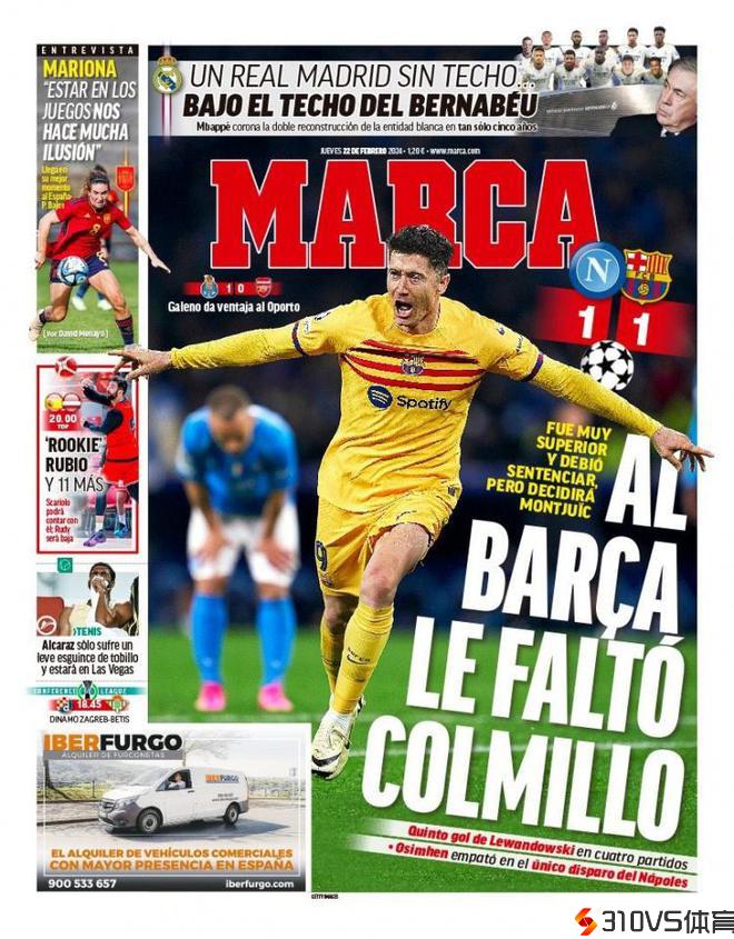马卡报昔日头版:姆巴佩为新伯纳乌加冕 巴萨对那不勒斯片面占优