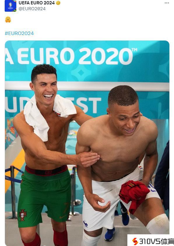 偶像自动贴贴欧洲杯官方晒照:交流球衣后的C罗与姆巴佩