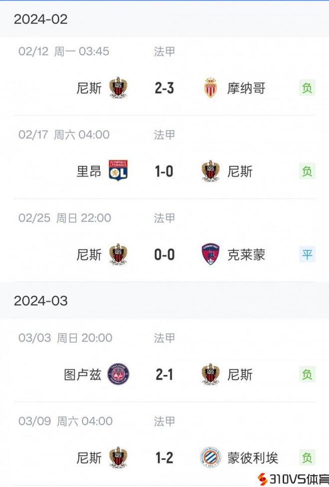 尼斯过去12场法甲仅拿11分,球队近5轮1平4负后堕入危机