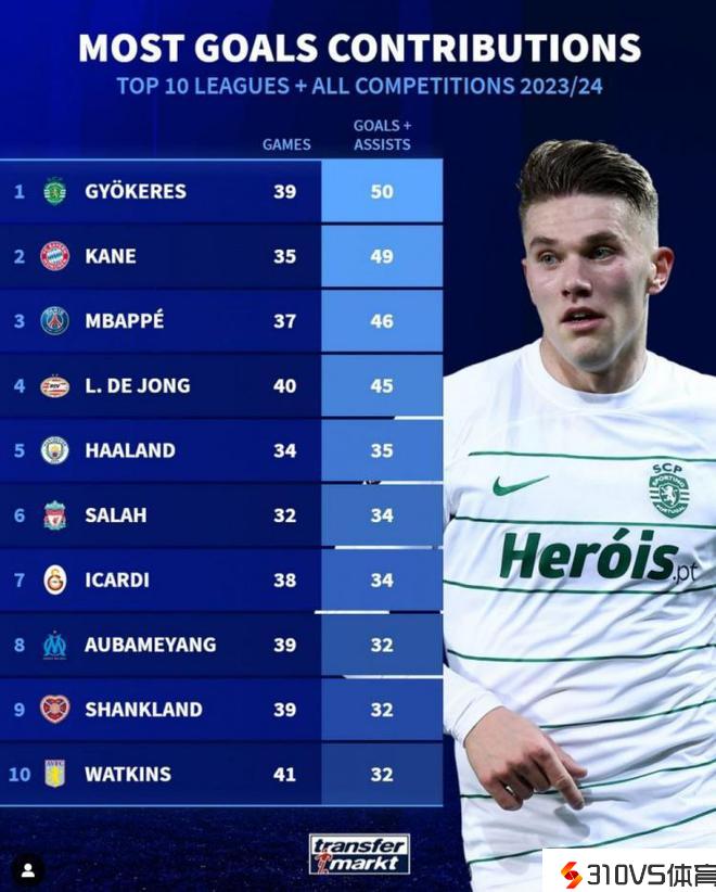 约克雷斯近几个赛季末尾在欧洲足坛展露头角,虽然未能过早登陆豪门,但在葡萄牙体育的表现曾经惹起了豪门球队的留意。由于他的身形以及踢球作风酷似C罗,之前也有不少媒体把他称作是瑞典C罗。不知道这个赛季在打出疯狂表现之后,会不会在接上去迎来转会。排在第2位的是拜仁前锋哈里凯恩,他在35场竞赛当中制造了49粒进球。凯恩在拜仁的效率就不用多说了。