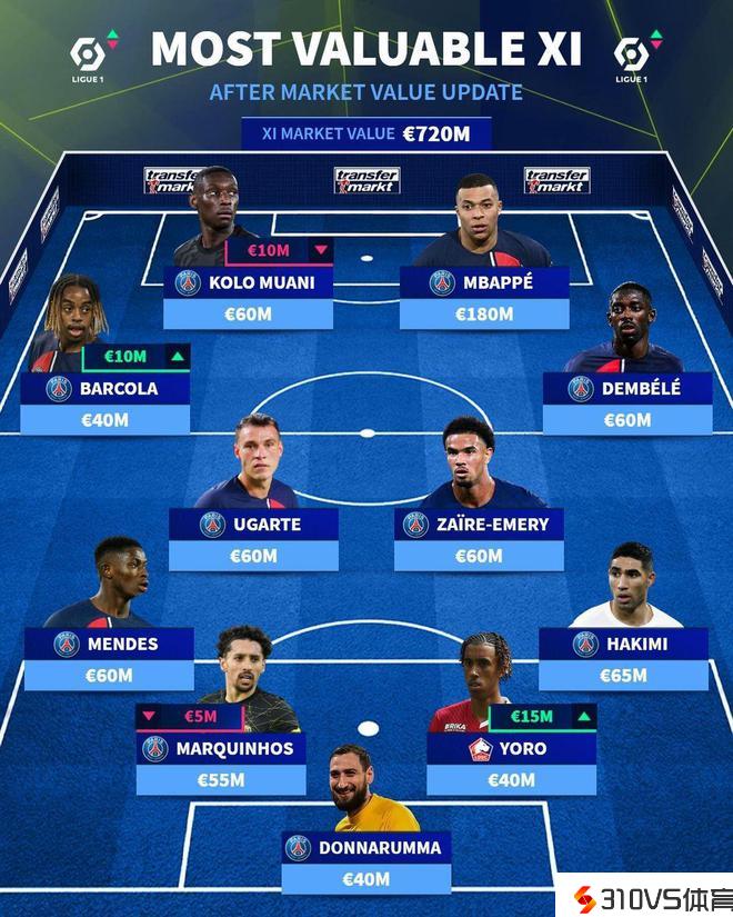 一家独大,德转列法甲球员最贵阵:姆巴佩领衔巴黎10人中选