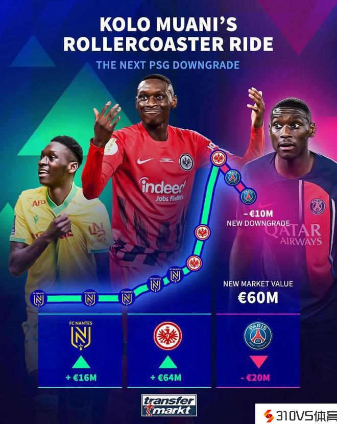 亿元先生身价再降1000万!25岁穆阿尼身价两连跌,目前剩6000万欧