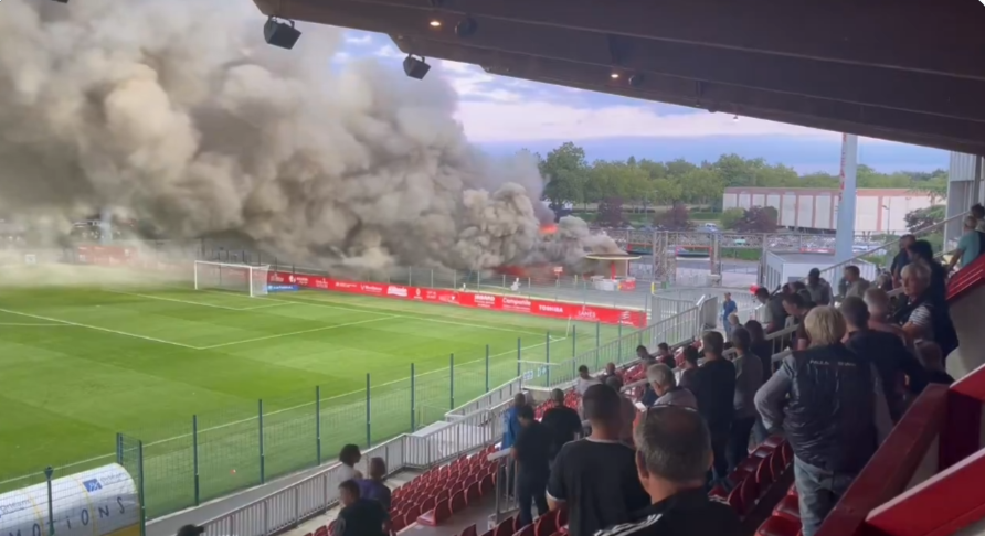 😨法丙联赛球场中场休息突发大火 比赛被迫中断所幸无人伤亡