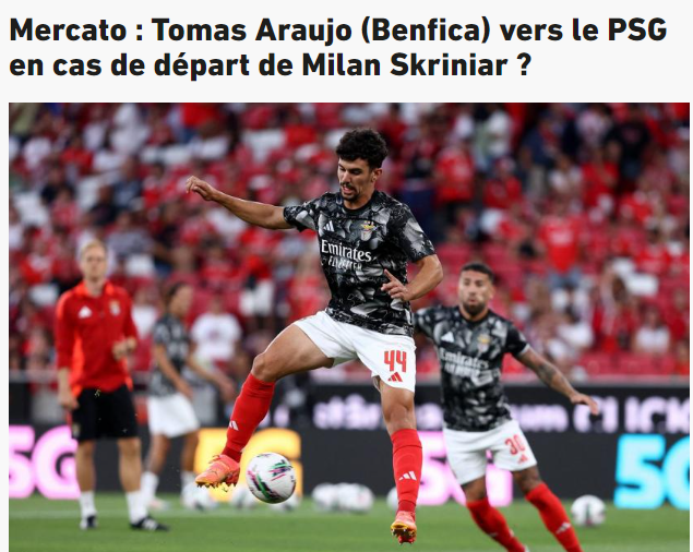 法国《队报》报道,在带走了本菲卡小将若昂·内维斯后,大巴黎又盯上托马斯·阿劳霍。