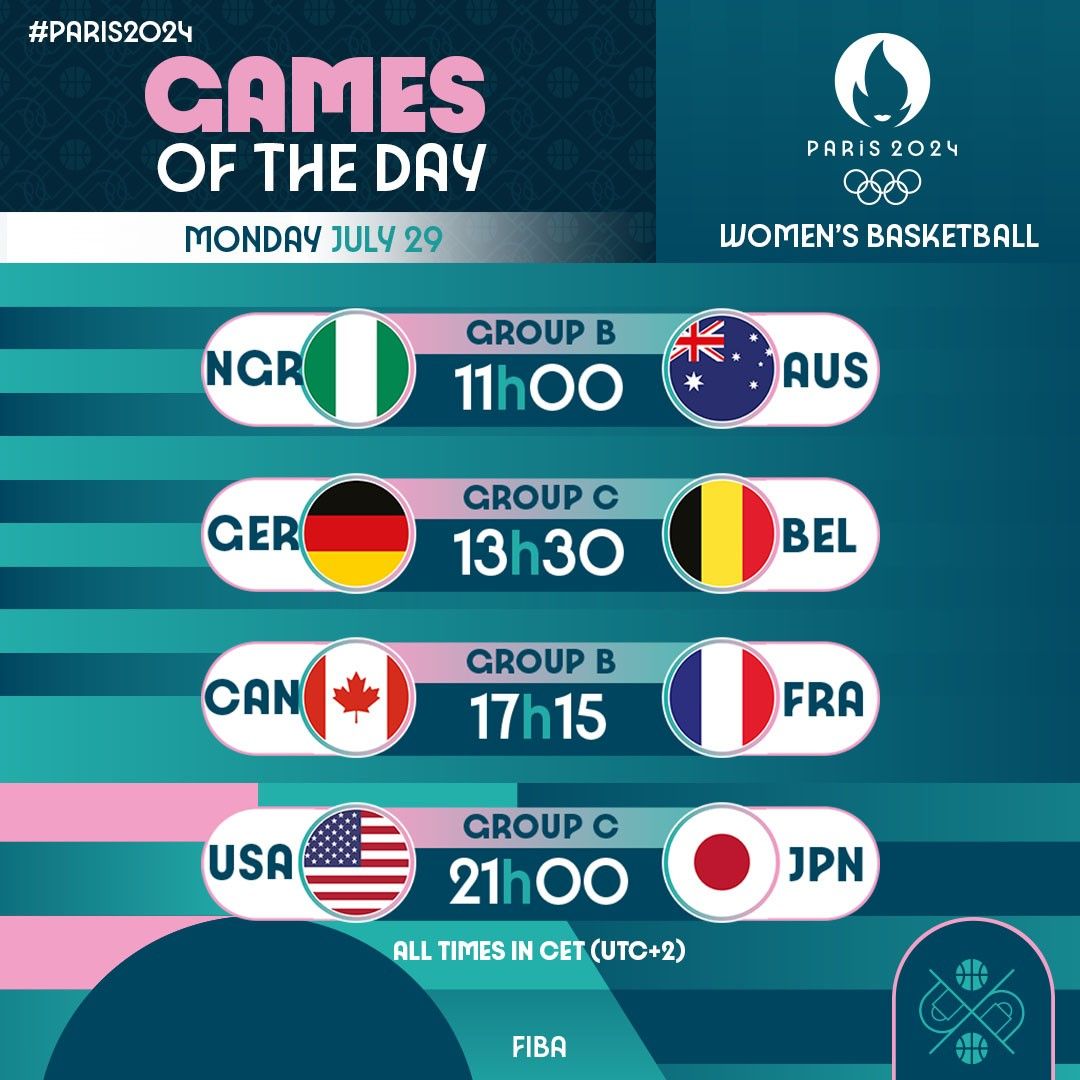 北京时间7月29日讯,奥运篮球进入第三比赛日。今日虽然没有男篮比赛,但是看点依然不少。美国女篮小组赛首战对阵日本女篮,法国女篮将会和加拿大女篮展开较量。4场比赛具体如下: