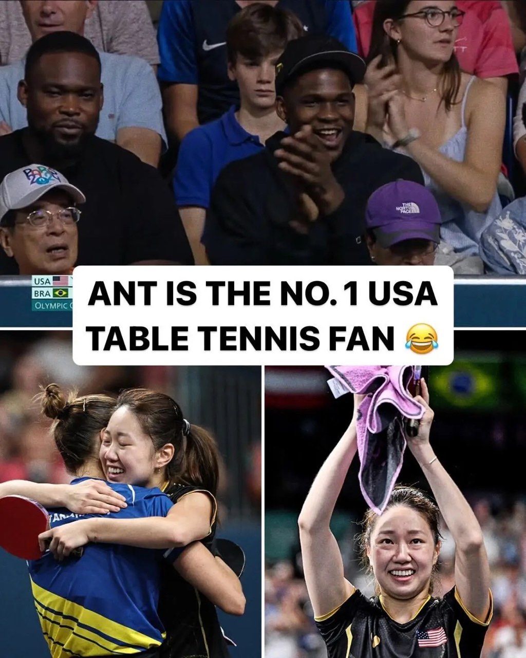 今日,美媒晒出一张美国队球员爱德华兹现场观看美国女乒选手张安的比赛并配文,“蚂蚁”是美国女乒的头号粉丝。