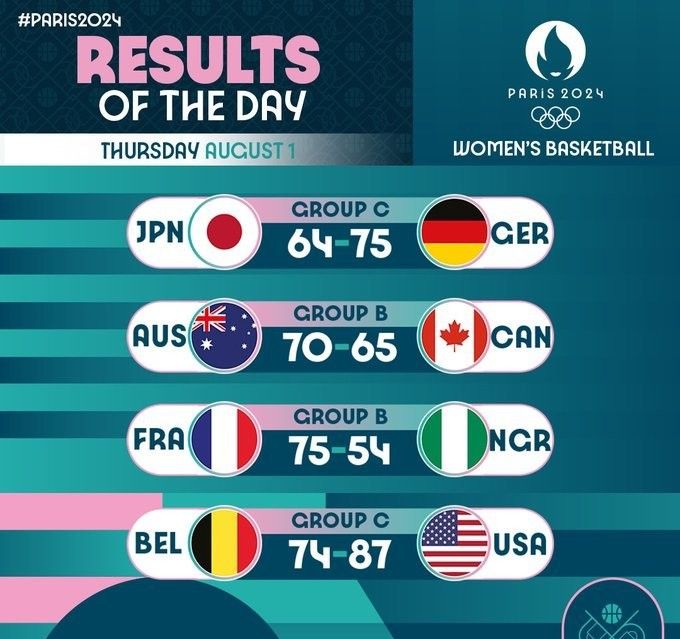 🚨奥运女篮第二轮战罢:美法德等五队提前晋级 还剩三个出线名额