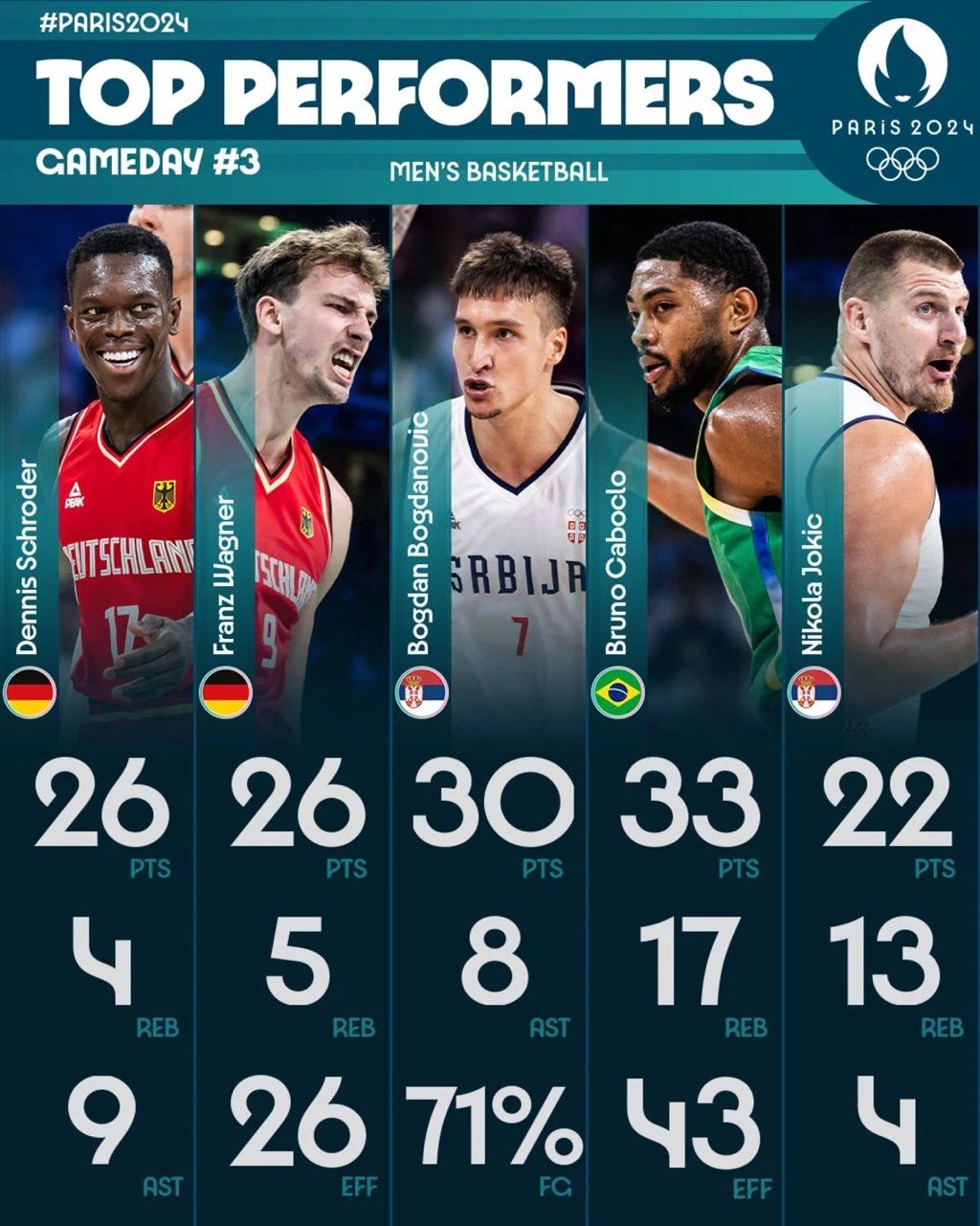 🌟FIBA公布本轮优秀选手:施罗德、小瓦双双30+ 约老师带队获胜