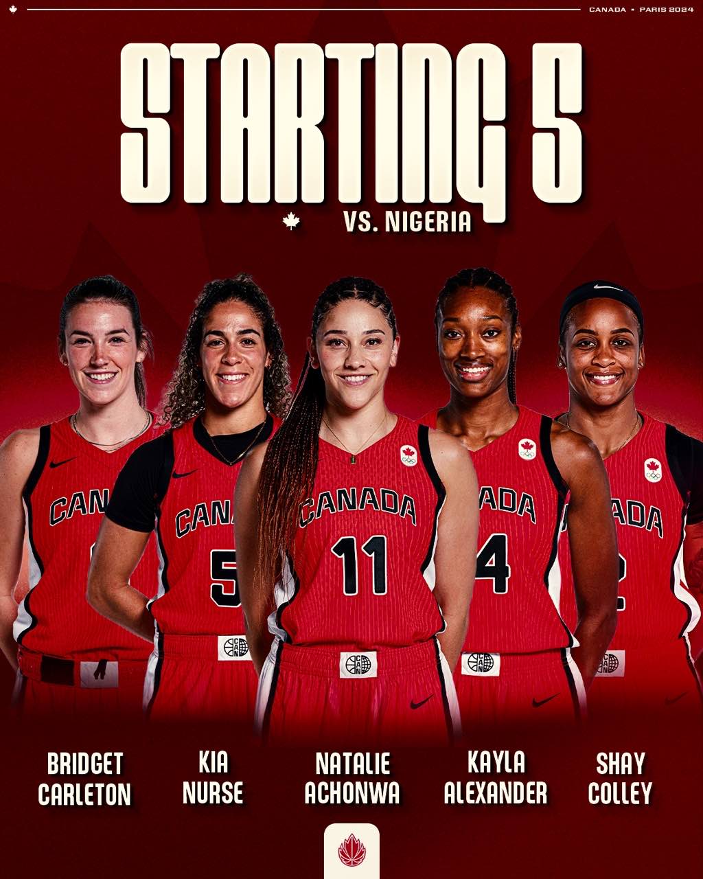 🔥关键一战!加拿大女篮战尼日利亚首发:卡尔顿领衔