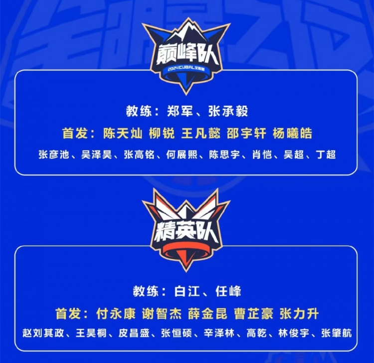 5月25日讯 在第26届全国大赛开打之前,CUBAL迎来重磅前菜全明星之夜,今年的全明星之夜延续此前的赛制以精英队对阵巅峰队展开厮杀,精英队方面坐拥西南赛区和西北赛区的MVP付永康、张力升,巅峰队则以陈天灿和王凡懿为首。