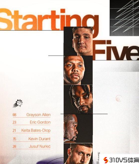 太阳首发:杜兰特、努尔基奇、戈登、阿伦、迪奥普