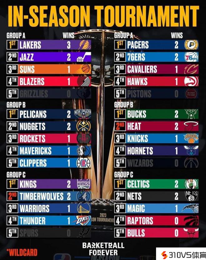 美媒晒季中锦标赛各组排名:湖人是独一3胜球队 4队被淘汰出局