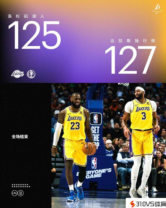 詹皇33+8+9湖人2分惜败独行侠 东契奇33+6+17浓眉37+11