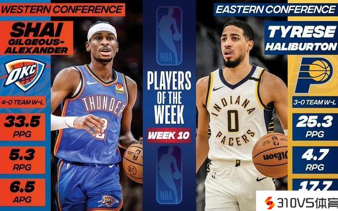 上周雷霆4胜0负,亚历山大场均贡献33.5分5.3篮板6.5助攻1.5抢断1盖帽,投篮命中率62.3%,三分命中率38.5%,罚球命中率94.3%。雷霆官方晒海报祝贺亚历山大获奖。