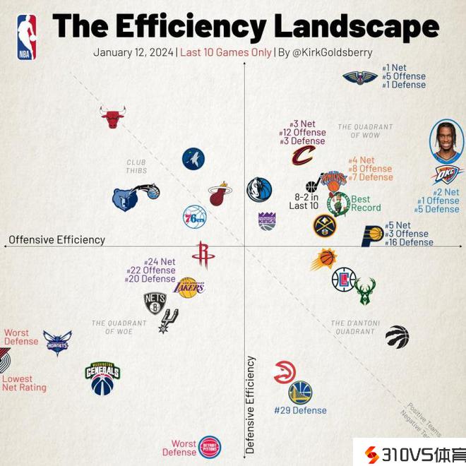 近十场攻防象限图:雷霆最利矛&鹈鹕最强盾 胆小鬼防卫倒数第二