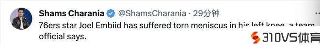 76人遭重创!曝恩比德左膝半月板撕裂 恐赛季提早报销+无缘MVP
