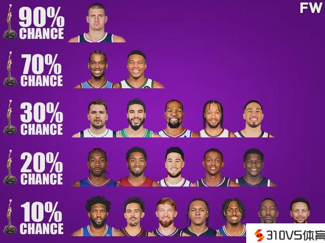 三档中选MVP概率高达30%的球员:东契奇、塔图姆、杜兰特、贾伦布伦森、哈利伯顿