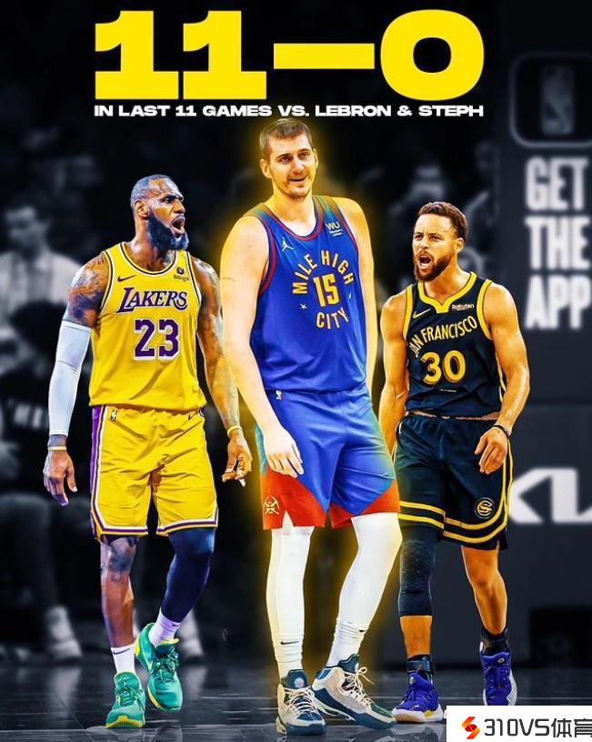 约基奇过去11局面对詹姆斯和库里战绩为11胜0负 且场均三双!