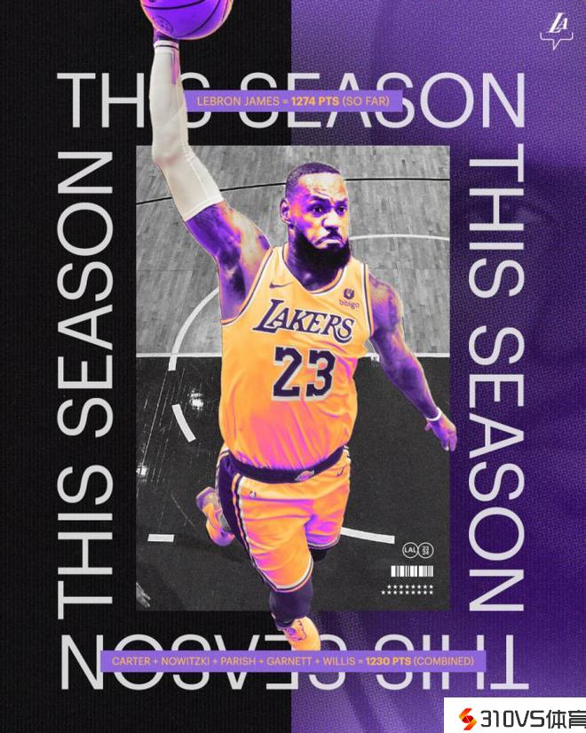 无需多言!詹姆斯生涯第21季已得1274分 其他人共1230分