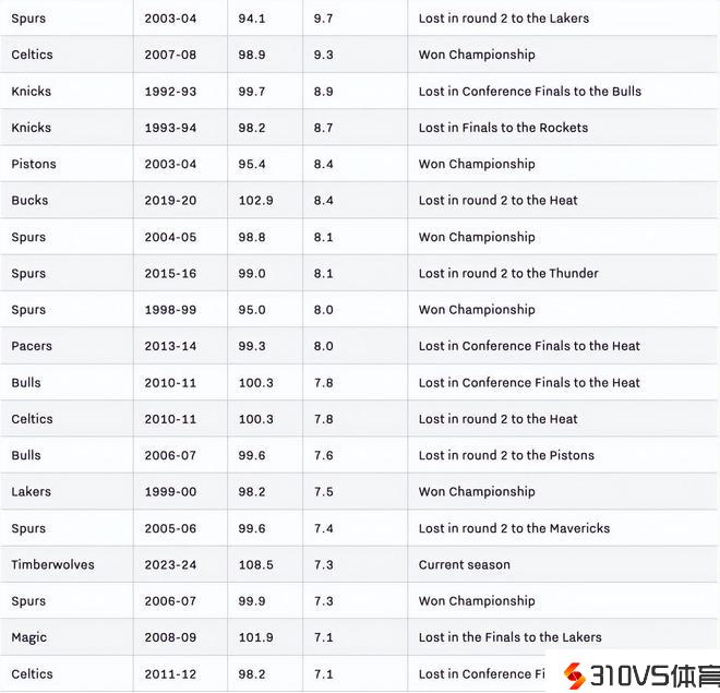 森林狼不只仅拥有顶级防卫,从数据面来看,他们也是过去40个赛季中最具支配力的球队。