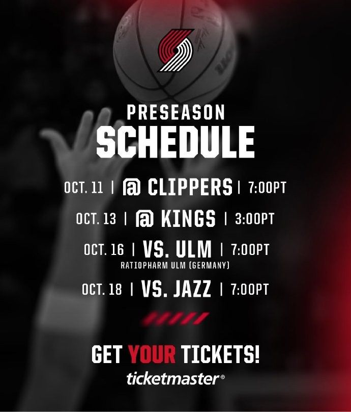 🚨开拓者官方公布2024-25赛季季前赛赛程:10月12日首战对阵快船