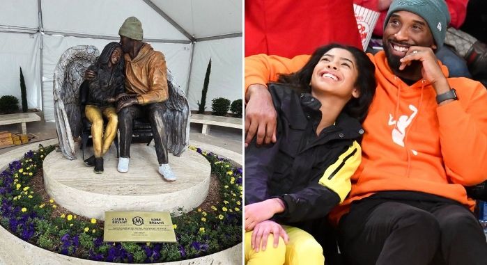 🔥科比的第二座雕塑揭幕:灵感源于与女儿Gigi在场边看球