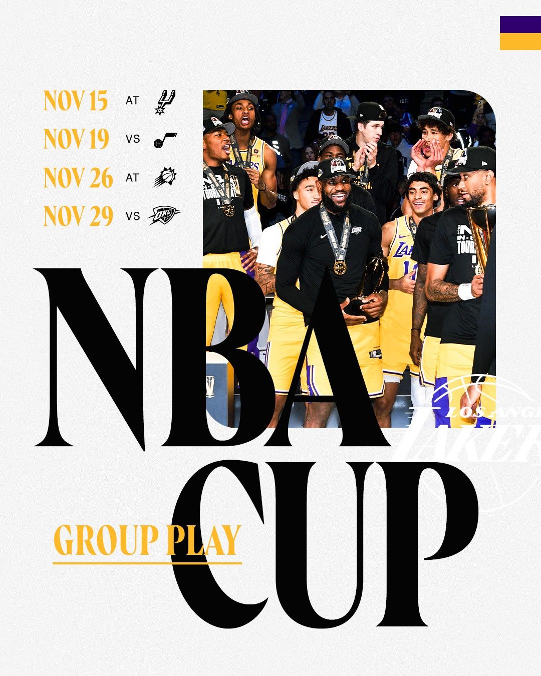 🔥湖人晒11月NBA杯赛程:先后对阵马刺、爵士、太阳、雷霆